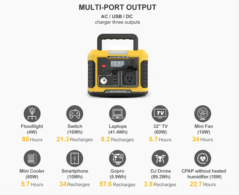Portable power station, a convenient and mobile power source that provides efficient and stable power supply. This product utilizes advanced solar photovoltaic technology, which can be charged by natural light sources and also supports external chargers. In addition, the power station can also be charged by other energy sources such as wind power, making it suitable for various outdoor activities and emergency situations. This product features safety, reliability, environmental friendliness, energy efficiency, and stability, making it an essential power supply device for your travels and daily life. We also recommend that you pay attention to safety and comply with relevant regulations and standards during use.